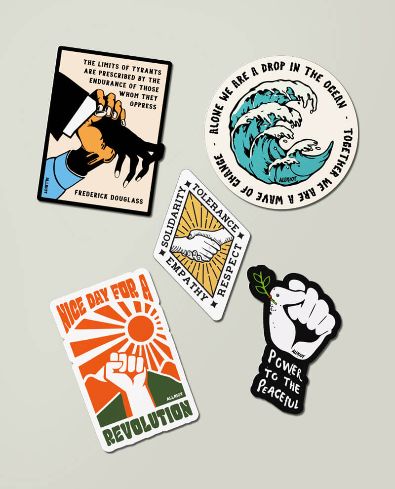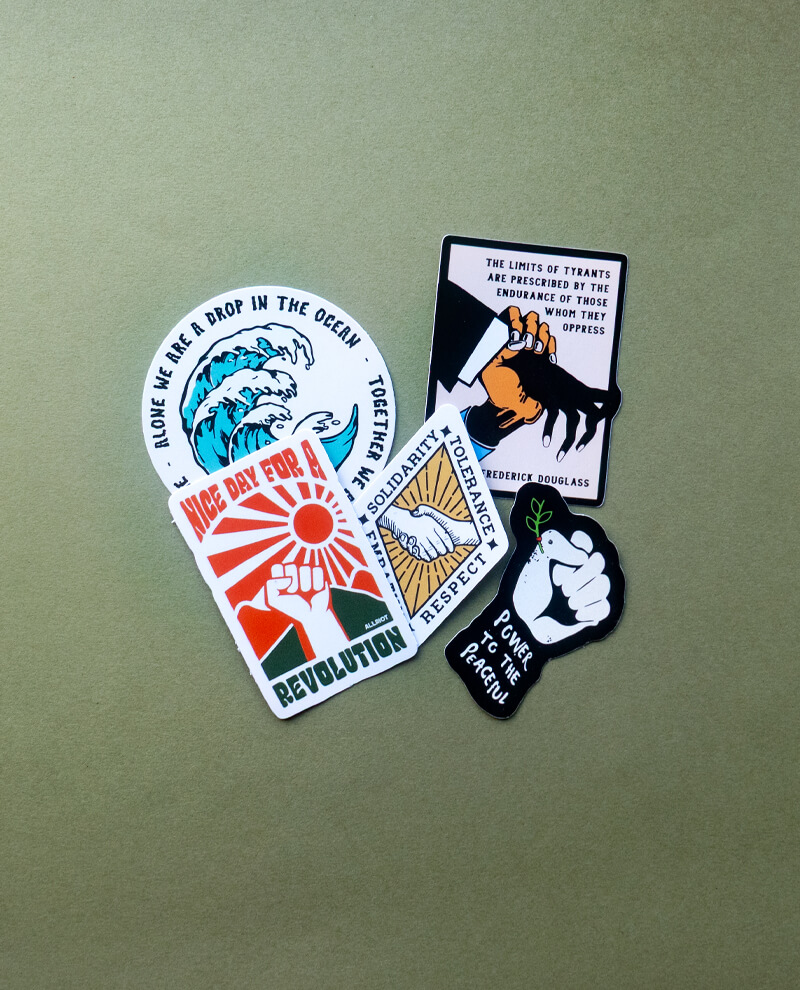 Use your stuff to say enough is enough! This sticker pack takes on injustice and inequality with punchy messaging and striking visuals. Slap them on your water bottle, laptop, or notebook to spark conversation and spread the word.