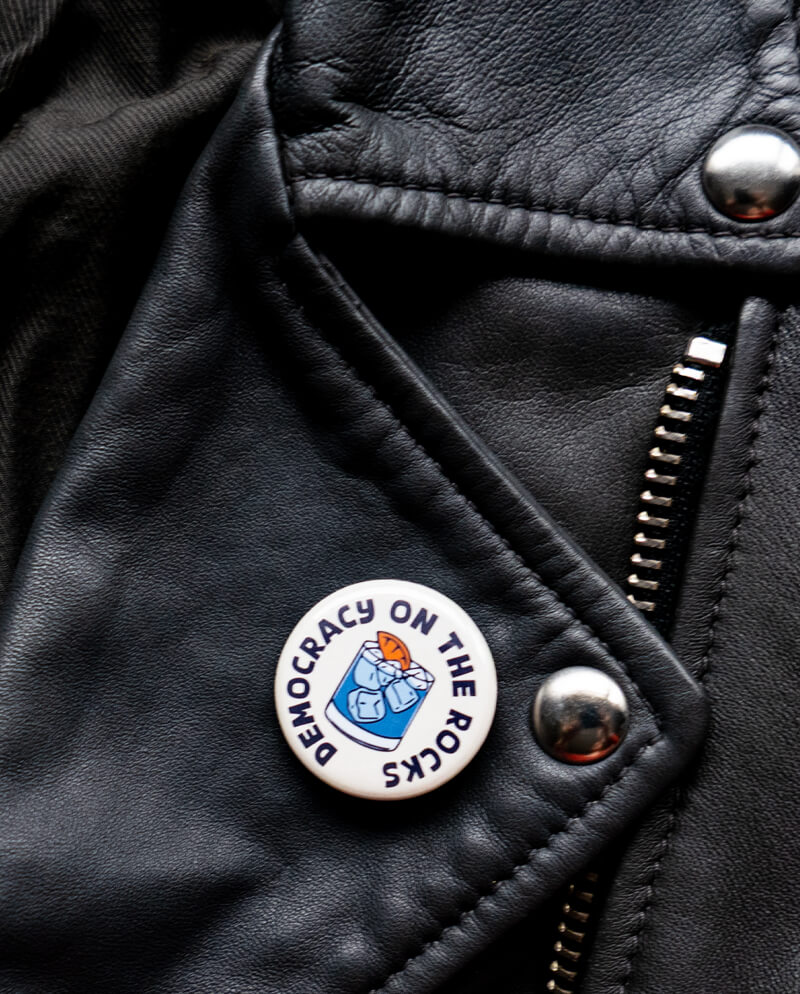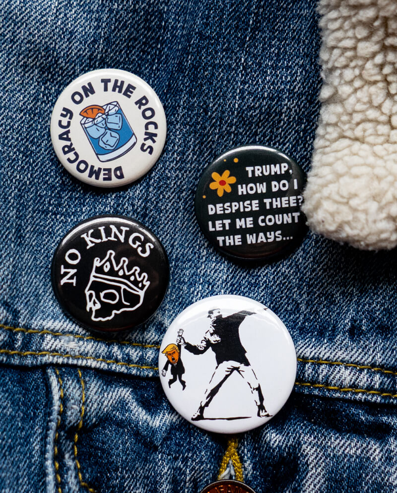 - Three 32mm / 1.25″ pin buttons and one 38mm / 1.5″
