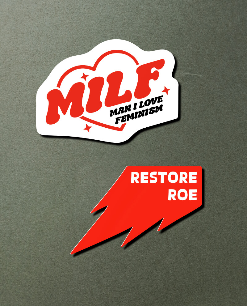 Use your stuff to say enough is enough! This sticker pack takes on the patriarchy with punchy messaging and striking visuals. Slap them on your water bottle, laptop, or notebook to spark conversation and spread the word.