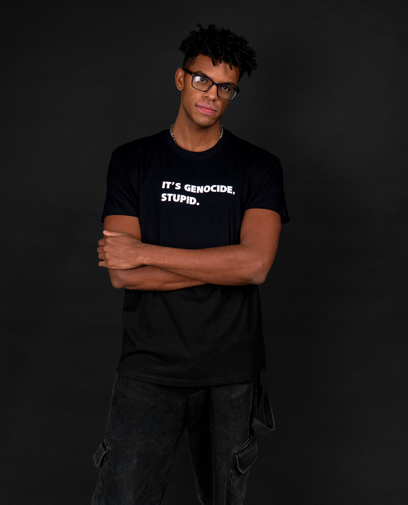 This t-shirt names the violence and the imbalance of power, the long history of occupation and dispossession, the patterns repeated while headlines turn over like clockwork. The media reports in fragments, softening the edges, and the public is happy to look the other way. Every demolished building, every cut-off supply, every restricted movement becomes part of the story, part of the insistence that history cannot be ignored or rewritten for comfort, no matter how hard they try to erase the evidence.