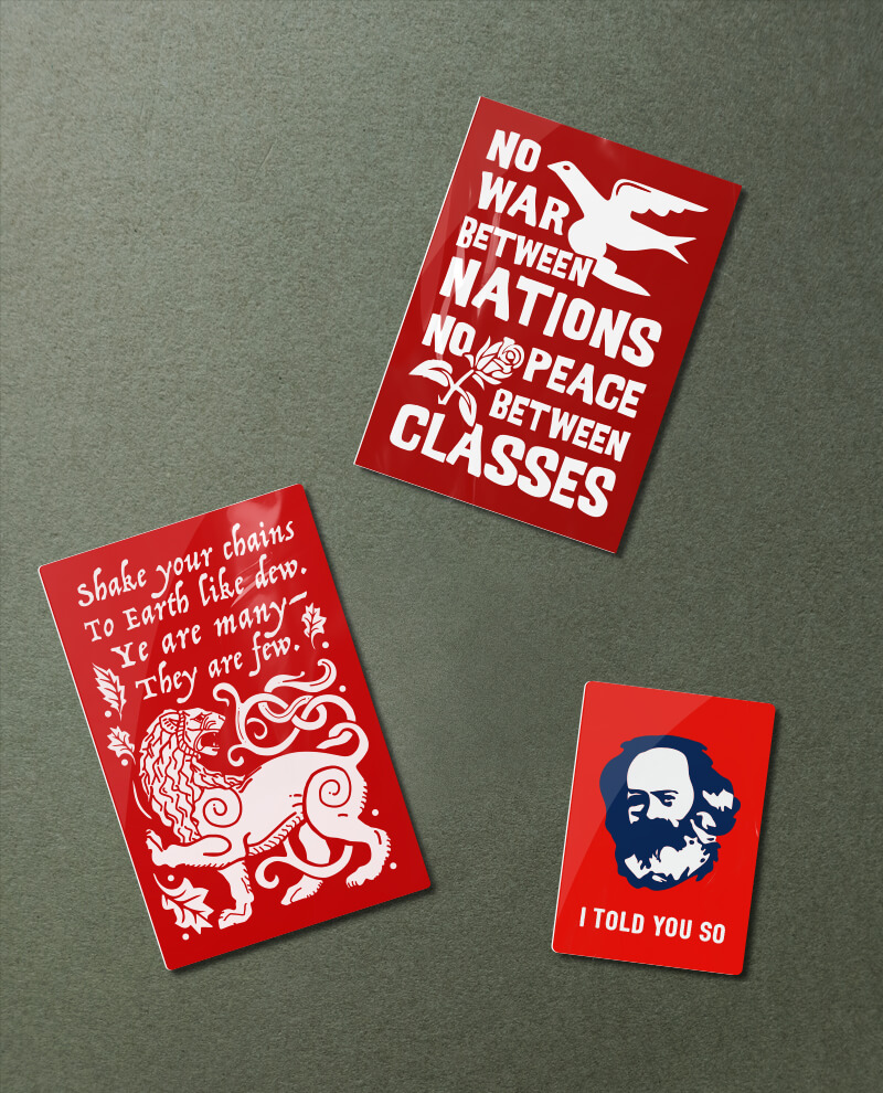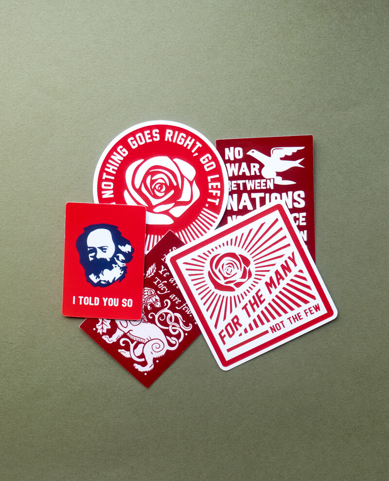 Use your stuff to say enough is enough! This sticker pack takes on capitalism with punchy socialist messaging and striking visuals. Slap them on your water bottle, laptop, or notebook to spark conversation and spread the word.